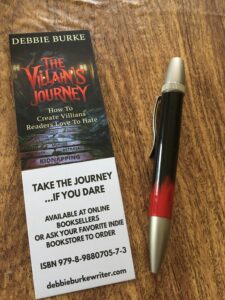 A writing conference is a great chance to build a mailing list. I took the opportunity to encourage sign-ups for my list with a prize drawing—a hand-crafted wood pen inspired by my book, TheVillain’s Journey-How to Create Villains Readers Love to Hate. My good friend and TKZ emeritus Steve Hooley created the stunning pen.
