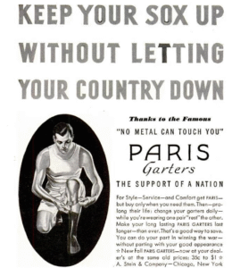 Oh, it was fine back on the farm, when only Bessie the cow and a few scattered chickens were witnesses to sartorial sag. But for the city-dwelling male—businessmen, newspaper reporters, plainclothes cops, or any man going to a public space like a ballgame, church, or saloon—slumping hose was a real challenge. Thus arose the men’s garter business. (It would not be until the late 1930s that synthetic fiber was patented by DuPont and made possible elastic socks.)