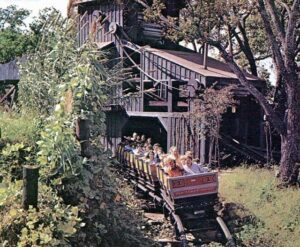As the years passed, the park’s theme shifted in focus from historical accuracy to pure family entertainment, though the different regions still remain in place and the architecture and sense of place still remain. Until recently, a few of the original rides remained, particularly the Log Ride and the Runaway Mine train.